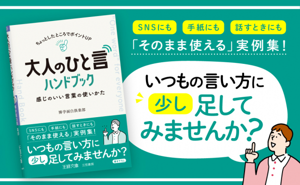 株式会社三笠書房(東京都千代田区/代表取締役:押鐘太陽 http://www.mikasashobo.co.jp )は、2023年9月28日に『大人の「ひと言」ハンドブック 感じのいい言葉の使いかた』著者博学面白倶楽部が、キンドル電子書籍で配信開始いたしました。