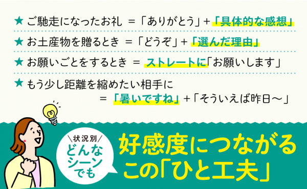 ◎もう少し距離を縮めたい相手に=「暑いですね」+「そういえば昨日〜」