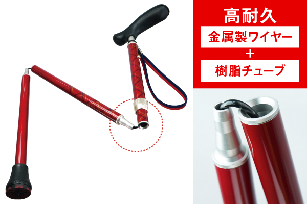 一般的なゴム式の折り畳み杖が苦手な方でも安心してご使用いただけます。