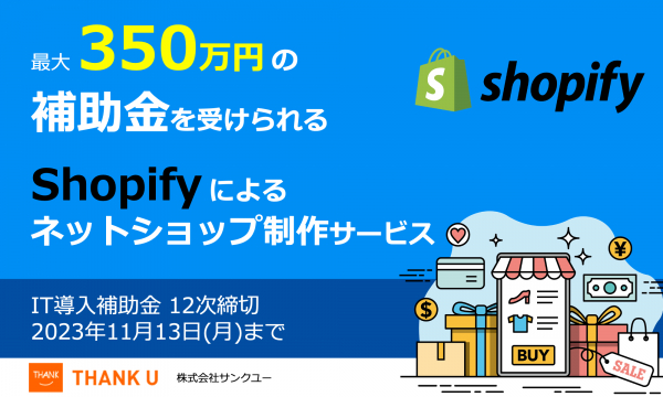 株式会社サンクユー(東京都品川区、代表取締役社長:堀川治)は、2023年10月30日、最大350万円のIT導入補助金の交付申請が可能な「Shopifyによるネットショップ制作」12次締切分を開始いたします。