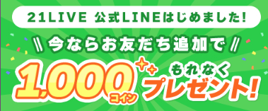 今すぐ21LIVEアカウントとお友達になって、1,000コイン獲得してくださいね!