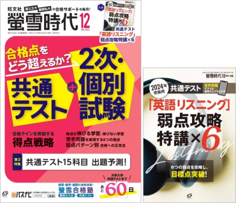 教育出版社の旺文社(東京都新宿区 代表取締役社長 粂川秀樹)は、難関国公立大・私立大合格を目指す受験生へ向け、志望校合格ラインの得点獲得方法を特集した 月刊『螢雪時代 12月号』を2023年11月14日に刊行いたします。