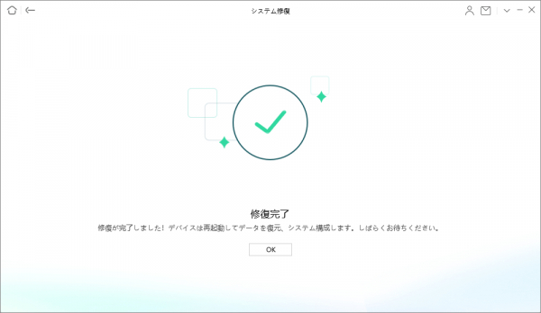 ステップ5.修復が完了すると、以下の「修復完了」ページが表示され、iPhoneが通常の状態に戻ります。