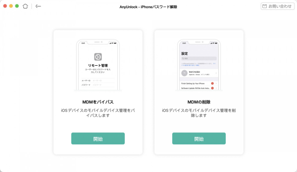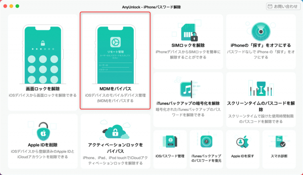 ステップ1、Anyunlockを起動>「MDMのバイパス」を選択します。