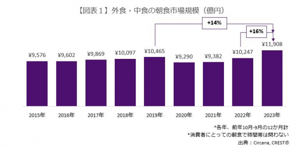 外食・中食 朝食市場規模は1兆1908億円で前年比16%増、コロナ前比14%増
