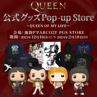 日本最大の音楽・映画・ドラマ・スポーツ・アニメ公式グッズ・ストア PGSを運営する株式会社JAMSHOPPINGは、2024年2月に来日が決定し、来日後の2月16日(金)からは映画『フレディ・マーキュリー The Show Must Go On』(配給:NEGA)の公開も決定している、QUEENの公式ライセンス商品を特集した「QUEEN公式グッズPop-up Store 〜QUEEN OF MY LIFE〜」を池袋P’PARCO2F PGS STOREにて12月16日(土)〜2024年2月18日(日)の日程で開催いたします。