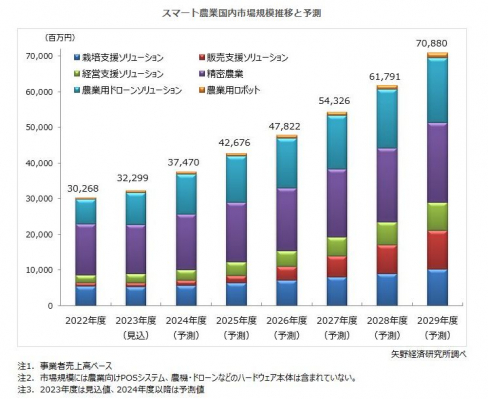 【矢野経済研究所プレスリリース】スマート農業に関する調査を実施(2023年)〜2023年度の国内市場規模は322億円の見込、可変施肥対応のスマート田植え機システム、リモートセンシングが普及〜