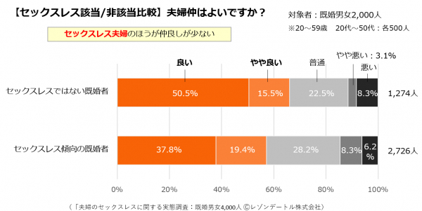 では、セックスレスではない既婚者と、セックスレス傾向の既婚者で分けると、図の結果になりました。