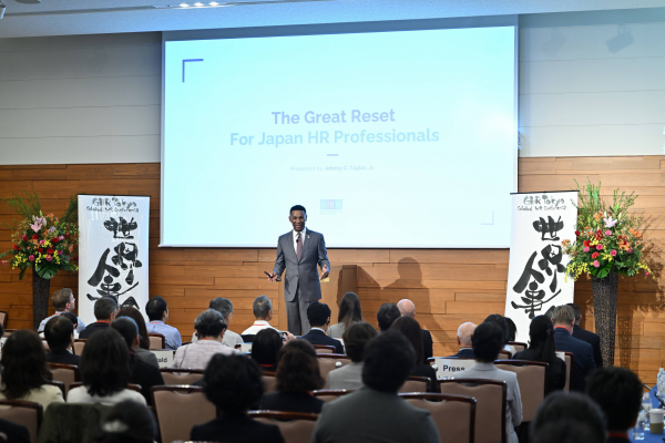 日本初の基調講演を行なった、SHRM (Society for Human Resource Management) CEO ジョニー・C・テイラー氏は世界の人事第一人者としてG20や各国首相などに向けて講演を行っている。その世界の人事リーダーの洞察力から、「日本の人事プロフェッショナルの偉大なリセット」と題した圧巻のプレゼンテーションを繰り広げました。 (世界人事会議参加者にはテイラー氏のプレゼンテーション資料が進呈されました)
