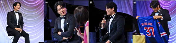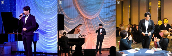 ドラマ『愛の不時着』より「兄のための歌」のピアノの生演奏から始まった1部では、タキシード姿で登場したミン・ウヒョクが、自身の想いを込め日本語で乾杯の挨拶、和やかな雰囲気の中美味しい料理と、スペシャルスイーツでもてなした。