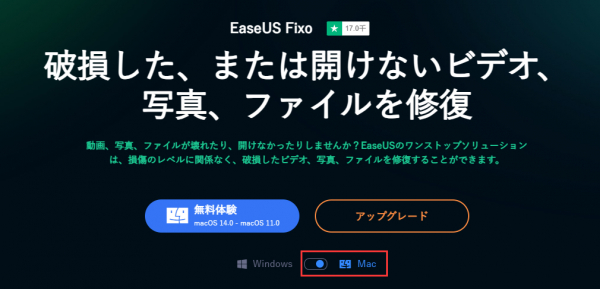 「EaseUS Fixo for Mac」は、Macユーザーが損傷したファイルを修復するための強力なツールです。異なる種類のメディアファイル、特に画像、ビデオ、文書ファイルの修復に対応しています。