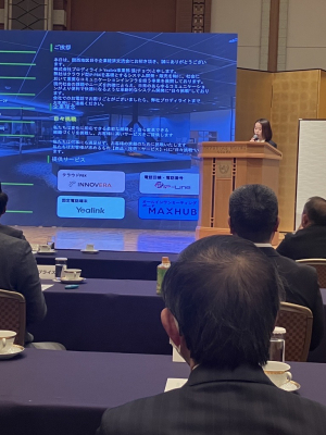 当社は中国に拠点を置く世界有数のユニファイドコミュニケーションにおけるソリューションプロバイダー、Yealink(ヤーリンク)社の製品を取り扱っており、特に同社SIP(※)端末カテゴリにおいては日本国内の総代理店をつとめさせていただいていることから、登壇の機会を頂戴しました。当日は、当社営業担当の張が事業及びサービスのPRをさせていただきました。