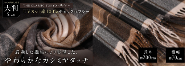 今冬、株式会社Product Agentが運営するUVケアブランド「THE CLASSIC TOKYO」が贈る大人気商品「皮膚科医監修ふわさらカシミヤタッチ UVカットストールマフラー」に、チェック柄の新デザインが5色一挙に登場!