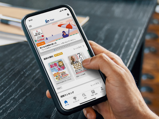 「flier」はビジネス書の新刊や話題の本、名著などを1冊10分で読める形に要約して提供しているサービスです。効率良くビジネスのヒントやスキル、教養を身につけたいビジネスパーソンに利用されており、現在3,400冊を超える要約が読み放題です。