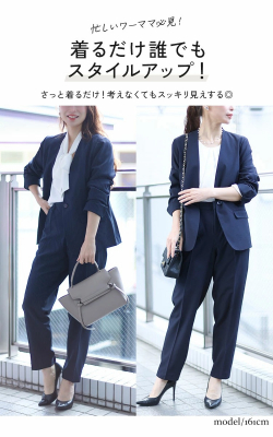 ・オーソドックスなテーラードスーツは、スカートとパンツの2ボトムに