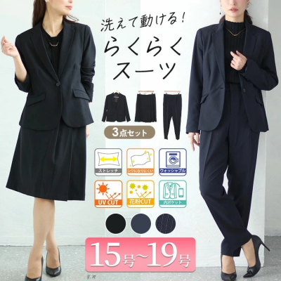 \働くぽっちゃり女子へ朗報です/もう疲れたと言わせない!洗える!走れる!らくらくスーツセットが待望の新作発売