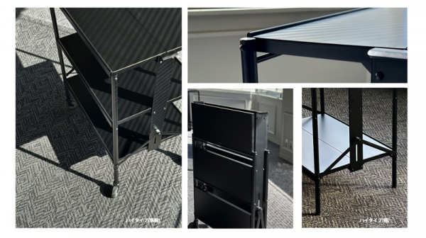 ・車輪が外せて棚にもなるアタッチメントを付属。折りたたみ式の持ち運びテーブルにも活用可能(ハイタイプのみ)