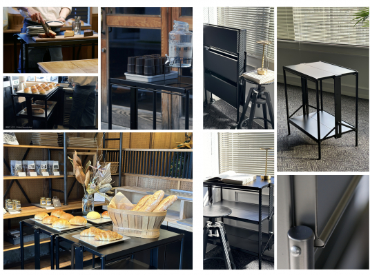 ワゴンや折りたたみテーブルとして追加用の客席やビュッフェ台などに。臨時の作業台としてキッチンにも