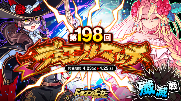 株式会社アソビズム(本社:東京都千代田区、代表取締役:大手智之)は、App Store・Google Playにて好評配信中のリアルタイム合体カードバトル『ドラゴンポーカー』で、2024年4月23日(火)より「第198回デュエルマッチ本戦」を開催いたします。