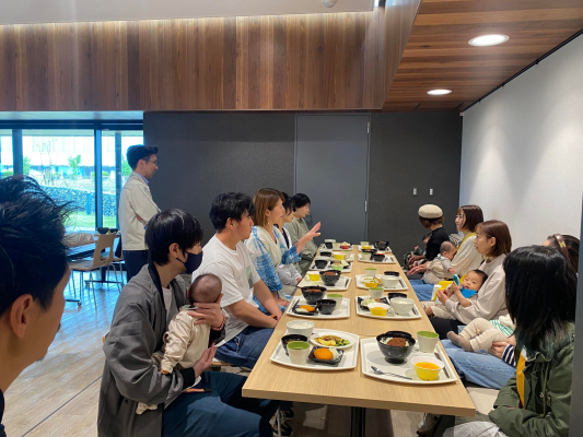 今回の両親学級では、立山科学本部工場 Atrium内にあるカフェで参加者と一緒にランチをいただきました。