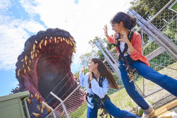 兵庫県立淡路島公園アニメパーク「ニジゲンノモリ」内にある大人気アトラクション「ゴジラ迎撃作戦」では、2つのジップラインコース「体内監視コース」「体表監視コース」にて、2名同時に並んでスタートすることができる「春のペアジップライン」を6月30日(日)まで開催中です。そして、5月18日(土)からは、フォトデッキに3種類のフォトプロップスが登場します。スリル満点のドキドキジップライン体験のあとは、フォトプロップスを持ちながら、みんなで遊んだ楽しい時間を写真に残しましょう!友達たちの“あんな顔”や“こんな顔”、みんなの“いま”を切り取ってシェアしよう!