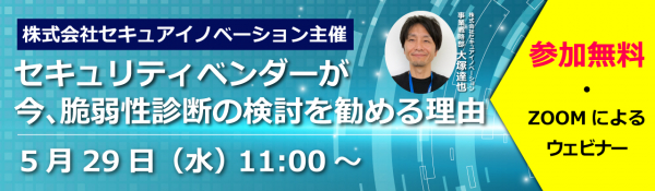 5/29【オンライン無料セミナー】「セキュリティベンダーが今、脆弱性診断の検討を勧める理由」