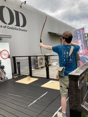 (1)「弓矢チャレンジ」/ゴジラ迎撃作戦のストーリーを再現。弓矢で的当てにチャレンジするゲーム。