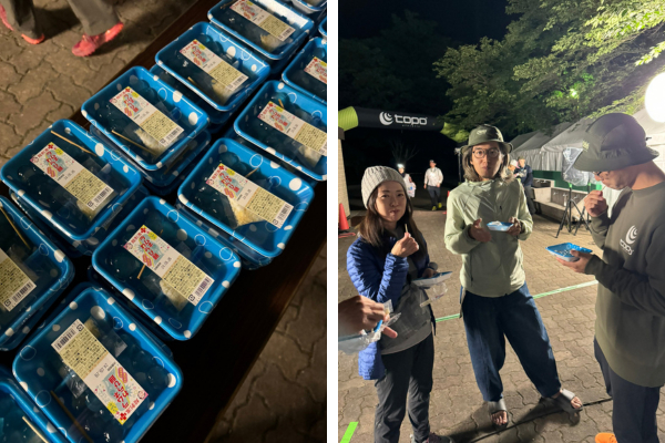 当イベントでは、兄弟会社のもちのプロ「明日香野」も協賛企業として参加しており、エイドにて「#豆あんこ餅」と「#塩あんこ餅」を提供、ボランティアの皆さんにも「#わらび餅(黒糖蜜付)」や「#ラムネわらび餅」といった全国で人気の和菓子を提供いたしました。活動時のエネルギーとして手軽に摂取できる和菓子は、走り続けるランナーにも、長時間応援してくれているボランティアの皆さんにも大好評でした。
