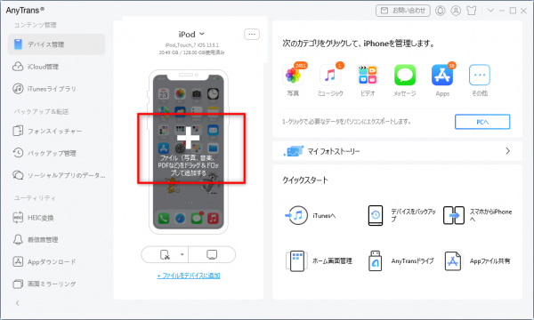 次は、AnyTransでiPhoneに取り込む手順を説明します。