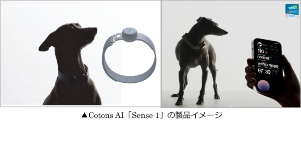 Cotons AI 「Sense 1」は、CareSixが開発する犬向け首輪型スマートデバイスです。4つのセンサーを内蔵し、心拍数や呼吸数、体温、活動量等を計測することが可能です。これらの健康に関する情報は、スマートフォン等で利用可能な専用アプリやウェブブラウザを用いてモニタリングできます。獣医療の現場でも利用できる高精度のデータが得られること、また、独自のAIアルゴリズムを用いて犬の活動状態をモニタリングできることが特長であり、昨年行われた世界最大級の家電・IT見本市「CES 2023」で、革新賞(Innovation Award)を受賞しました。