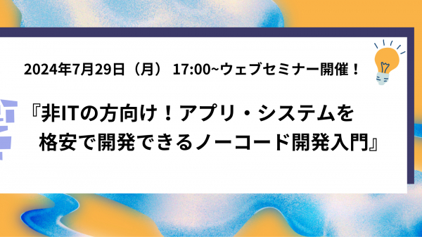 2024年7月29日(月) 17:00~ウェブセミナー開催! 『非ITの方向け!アプリ・システムを格安で開発できるノーコード開発入門』