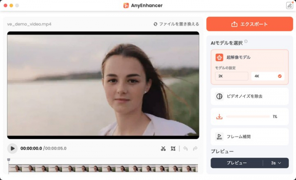 Step5.高画質化された動画をプレビューして結果を確認します。満足できる結果であれば、「エクスポート」ボタンをクリックして保存します。