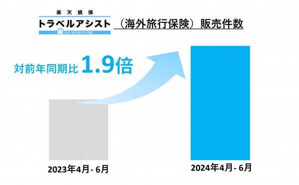 楽天損害保険株式会社(以下「楽天損保」)は、海外旅行保険「トラベルアシスト」(以下「トラベルアシスト」)の2024年4月から6月における販売件数が対前年同期比で1.9倍となりましたことをお知らせします。