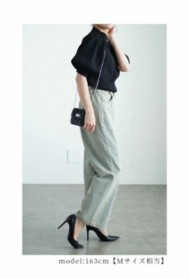 【低身長さんサイズ対応】艶めくパールのハイウエストデニムパンツ