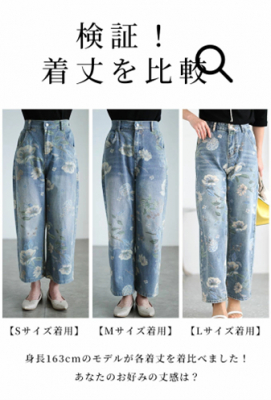 【低身長さんサイズ対応】優しげなお花プリントのデニムパンツ