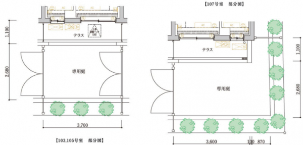 1階には全ての部屋に専用庭が完備されており、四季の移ろいを感じながら開放的な暮らしを楽しむことができます。
