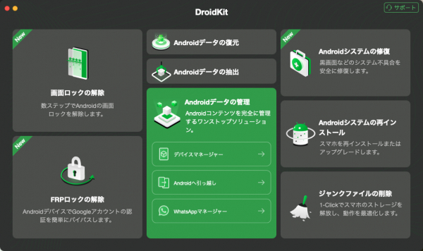 DroidKitはアンドロイドデバイスのため、開発されたデータ管理、システム修復ソフトです。対応できるアンドロイドがたくさんあり、専門知識が不要で、初心者でも簡単に使うことができます。DroidKitを使って、全てのアンドロイドの問題を簡単かつ完璧に解決できます。早くDroidKitをダウンロードして体験しましょう!