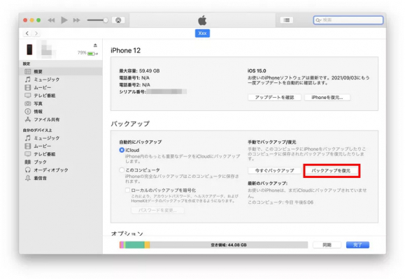 iTunesバックアップから復元する場合