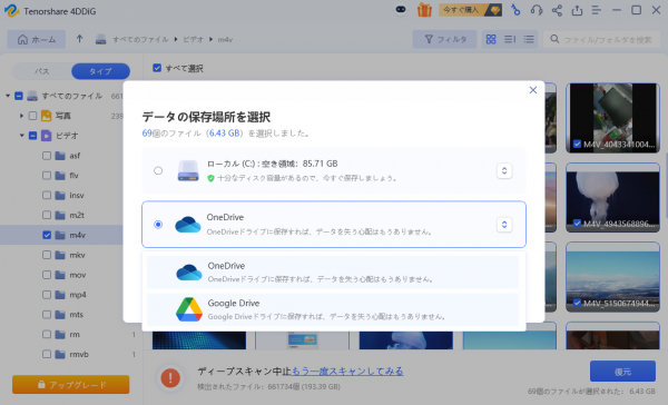 3.復元したファイルを保存する場所を指定します。例えばOneDriveまたはGoogle Driveなどのクラウドディスクに保存することを検討してください。