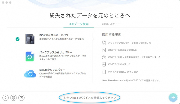 ステップ1、PhoneRescue for iOSをパソコンにダウンロードして起動します。