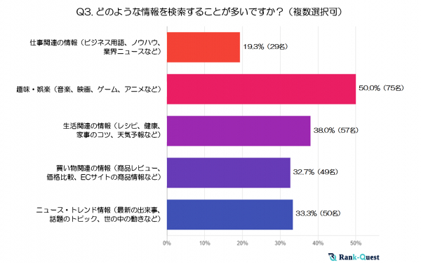 (注3) 本設問は複数選択可能ですが、回答を2つまでに制限しています。これにより、回答者が主に検索する情報の種類を絞り込み、日常的にどのようなジャンルが重視されているのかを、より明確に把握することを意図しています。