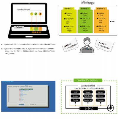 Pythonアプリケーションの環境セットアップにおいて、開発者はマシンのOS、ハードウェアやそのサポートソフトなど、多くの点を確認しなければなりません。また、1つのPython環境に複数のアプリケーションを組み込む場合、モジュール依存性のバッティングなど、多岐に渡る問題が起こり、容易に環境構築できず試行錯誤を繰り返すことで時間を要します。各Python開発環境でjupyter lab*を全て同じ環境になるように構築するには、構築に関するノウハウの蓄積が必要なため、ユーザーにとって負担が大きいことや、空いているGPUリソース を自動的に選択して効率よく使用するためには一定の知識とソフトウェア環境の調整が必要なことも課題となっていました。