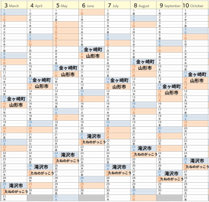 3月29日、4月26日、5月24日、6月21日、7月26日、8月23日、9月27日、10月25日