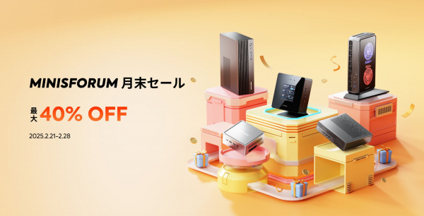 Kommend Technology Co., Limited が運営するミニPCメーカーのMinisforum(ミニーズフォーラム)は、Minisforum日本公式ストア(https://bit.ly/3D292cj)にて2月末を締めくくる「月末セール(https://bit.ly/4i50h00)」を本日より実施いたします。PC DIY愛好家に大人気のベアボーンキットを中心に、6,000円OFF・8,000円OFF・15,000円OFF・18,000円OFF対象モデルが続々登場。さらに特定モデル購入でオリジナル特大マウスパッドをプレゼントするWチャンス企画も実施します。