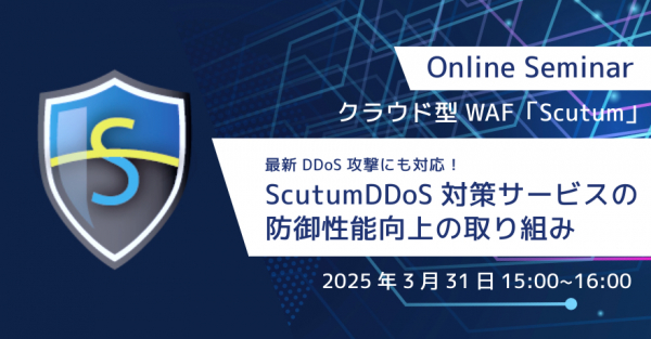 【ウェビナー】3/31(月)開催!セキュアスカイ主催 「最新DDoS攻撃にも対応!Scutum DDoS対策サービスの防御性能向上の取り組み」
