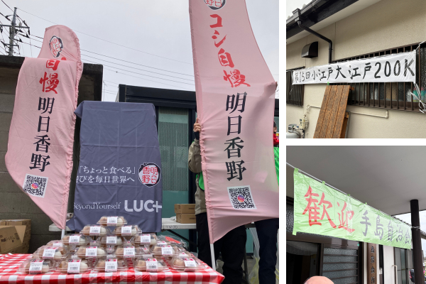 『「ちょっと食べる」喜びを毎日世界へ』、をミッションにする明日香野は、どこでも、色々なシチュエーションで=「毎日」皆様に『「ちょっと食べる」喜び』をお届けするため様々な活動を行なっており、今回はウルトラマラソンを楽しむ皆様に『「ちょっと食べる」喜び』をお届けするために「第15回小江戸大江戸200k」様を応援させていただきました。