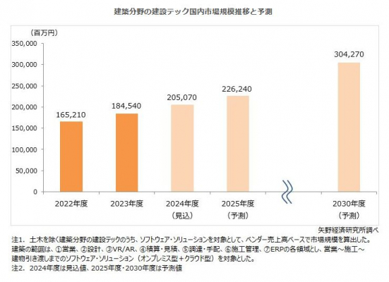 矢野経済研究所プレスリリース】建築分野の建設テック(ConTech)市場に関する調査を実施(2025年)〜2023年度の建築分野の建設テック市場は前年度比11.7%増の1,845億円と推計〜
