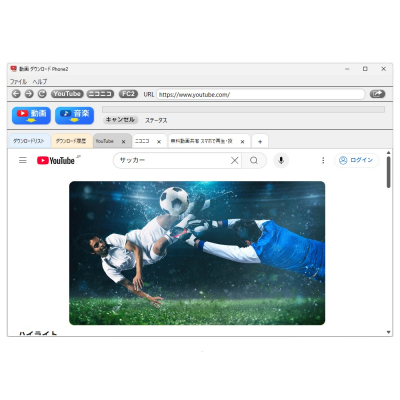 『動画 ダウンロード Phone2』は、YouTube、ニコニコ動画、FC2動画の動画や音楽をパソコンに保存できるソフトです。