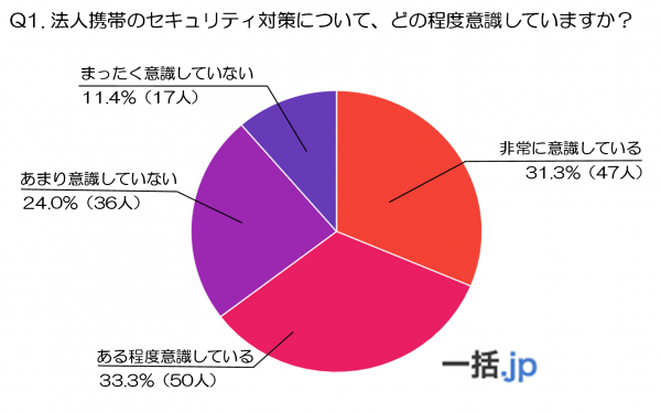 調査1:法人携帯のセキュリティ対策について、どの程度意識していますか?