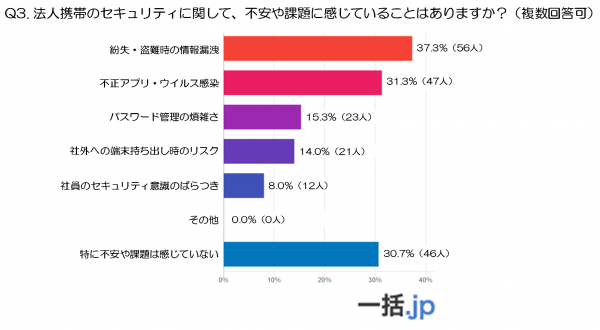 調査3:法人携帯のセキュリティに関して、不安や課題に感じていることはありますか?